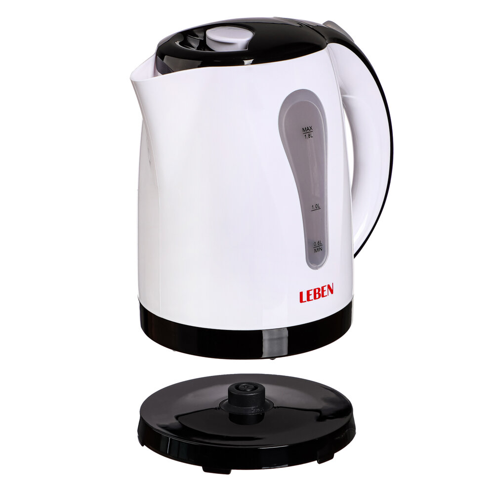 Чайник электрический 1,8 л LEBEN, 1850 Вт, пластик, белый/черный 475-123