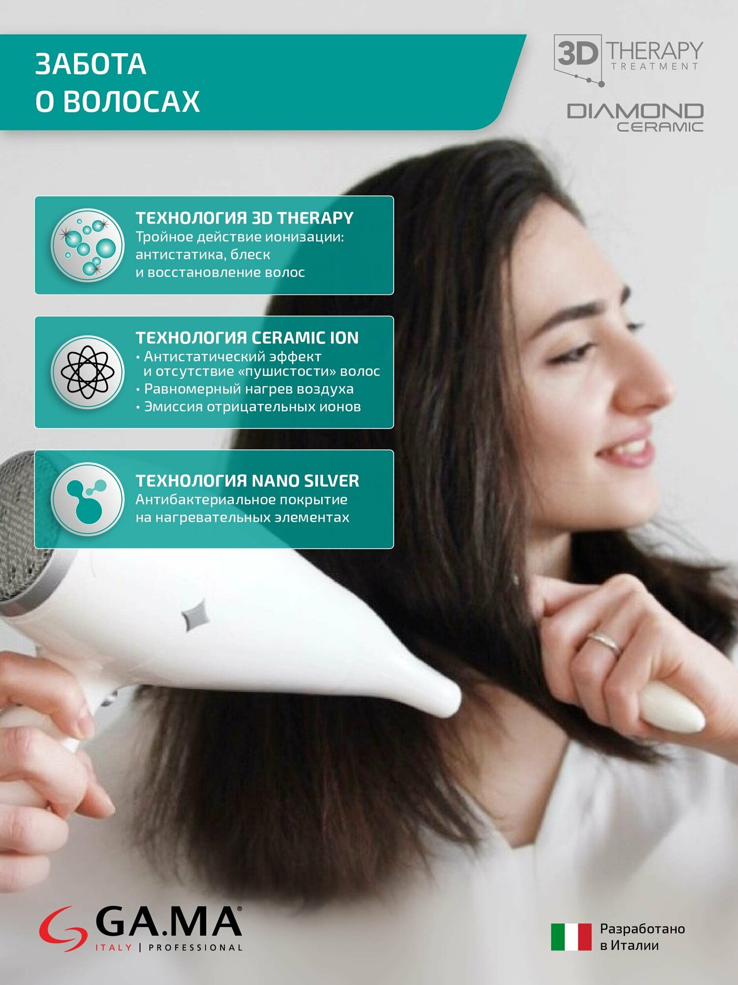 Фен для волос / Фен для волос профессиональный / Фен для волос с насадками GA.MA DIAMOND CERAMIC ION информация: