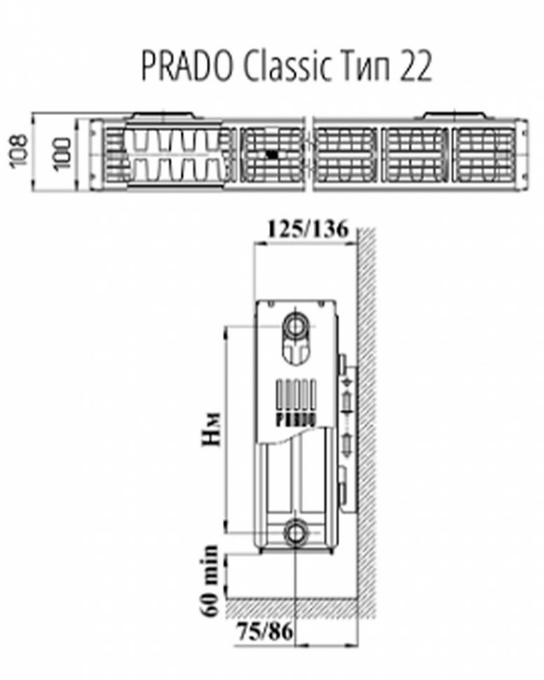 Радиатор стальной PRADO Classic 22/500/900 1956 Вт боковое подключение (+2 кронштейна)