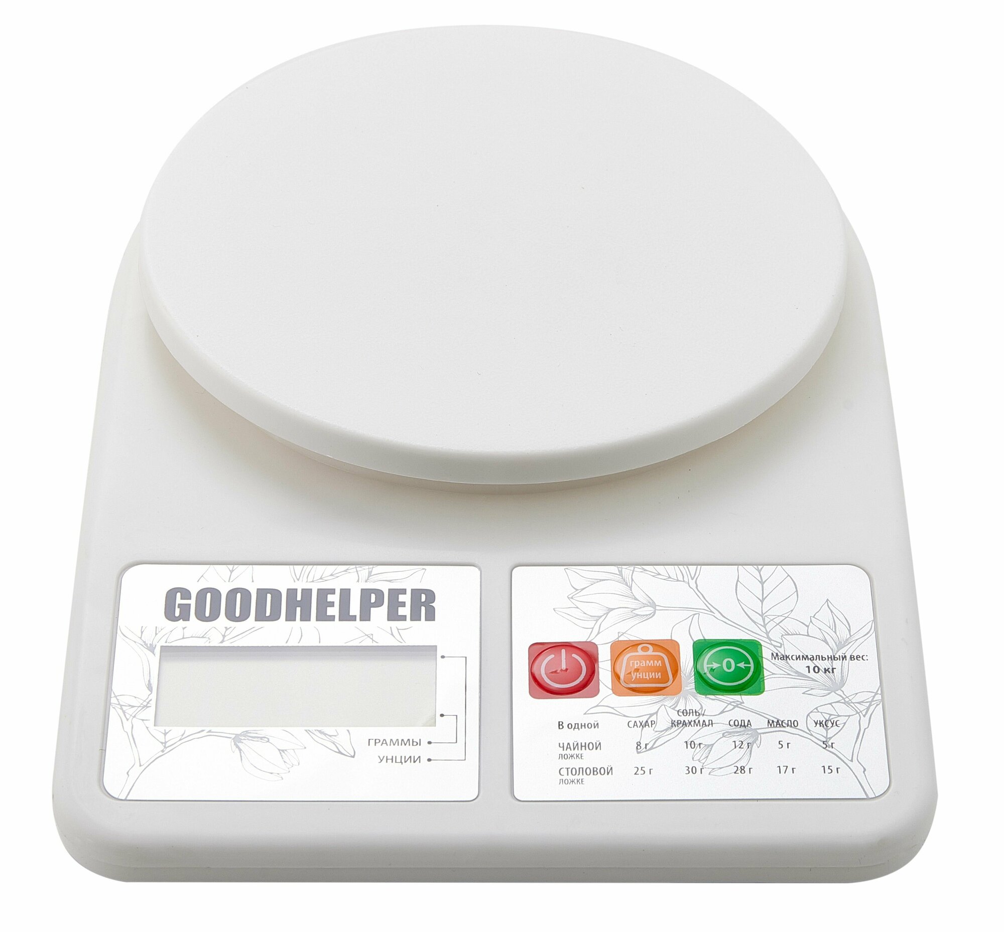 Весы кухонные GOODHELPER KS-S01 максимальный вес 10 кг, белый