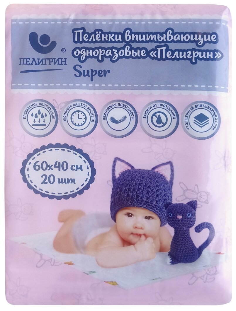Пеленки одноразовые впитывающие Пелигрин 60х40 см, 20 шт. Super информация: