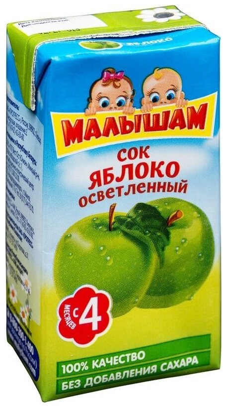 Сок осветленный Малышам Из яблок, c 4 месяцев, 0.125 л, 18 шт. в уп. информация: