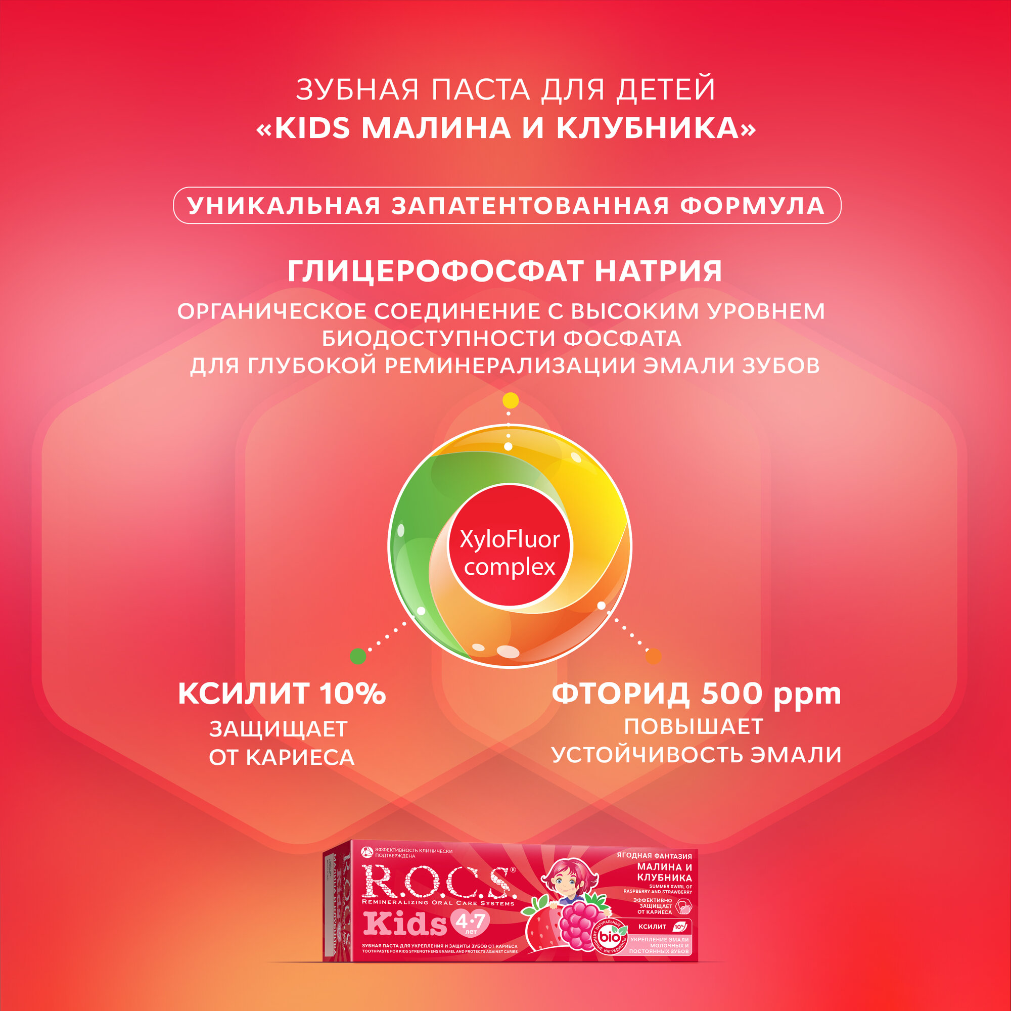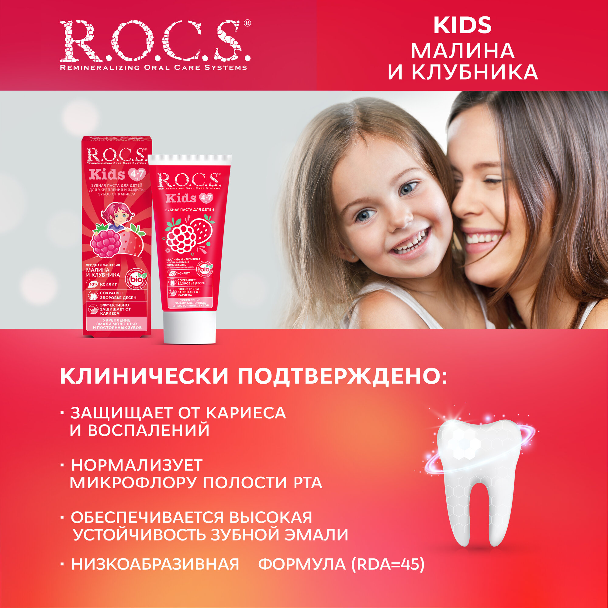 R.O.C.S. Зубная паста для детей 4-7 лет Малина и Клубника, 45 гр