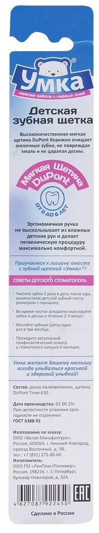 Детская зубная щетка Умка розовая от 2+, розовый информация: