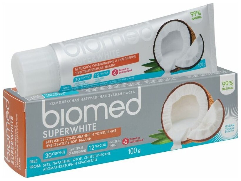 Biomed Зубная паста Superwhite, для чувствительной эмали, кокос, 100 г, 2 шт