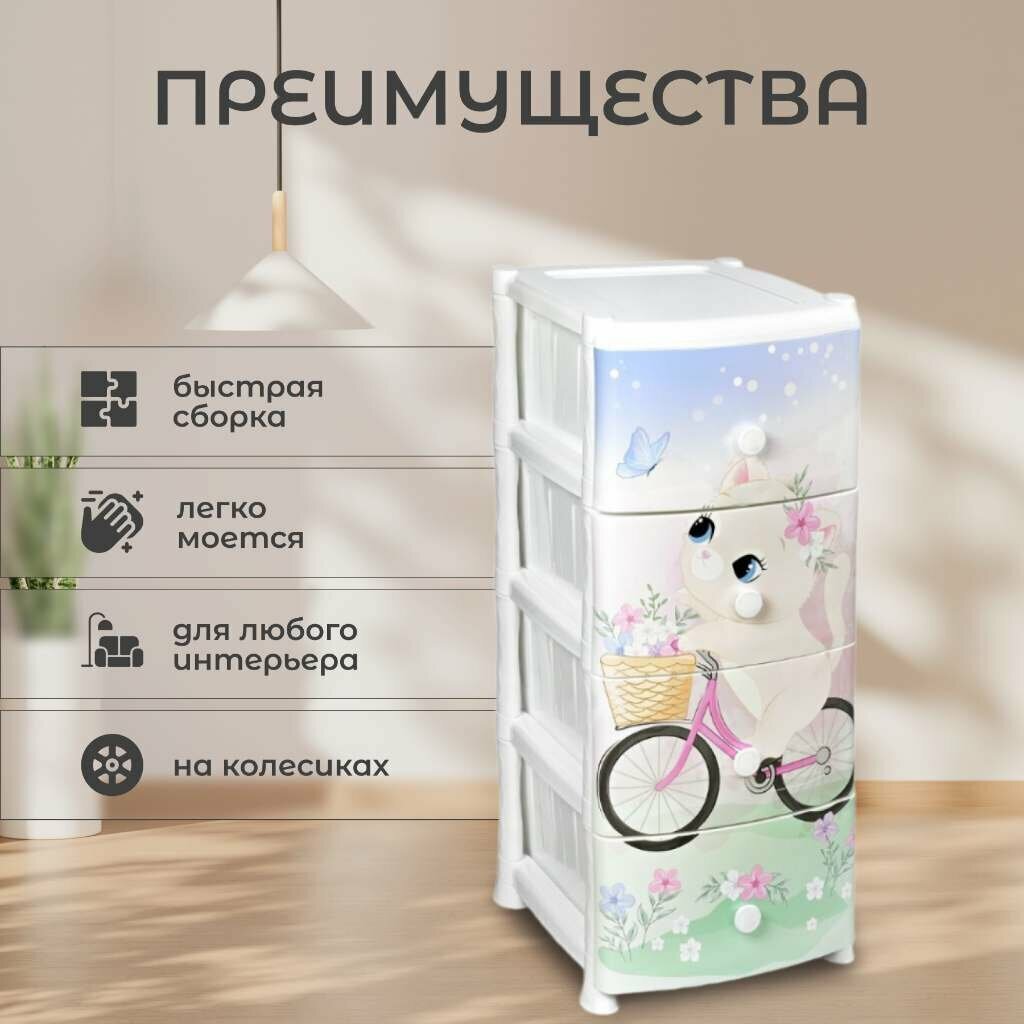 Комод пластиковый Kitty с 4 ящиками / универсальный стеллаж для хранения вещей / органайзер для аксессуаров