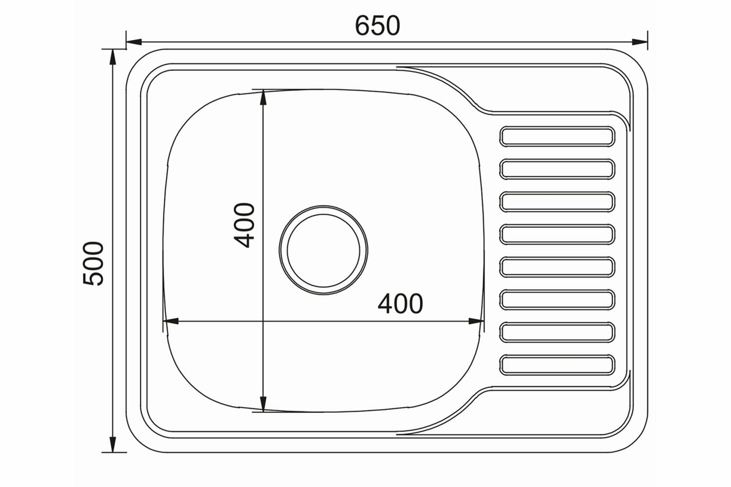 Врезная кухонная мойка Mixline из нержавеющей стали рифленая прямоугольная 50х65 см выпуск 3 1/2 глубина 18 см, крыло правое
