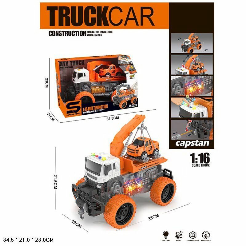 Машина инерционная Эвакуатор с машинкой подсветкой и звуковым сопровождением информация:
