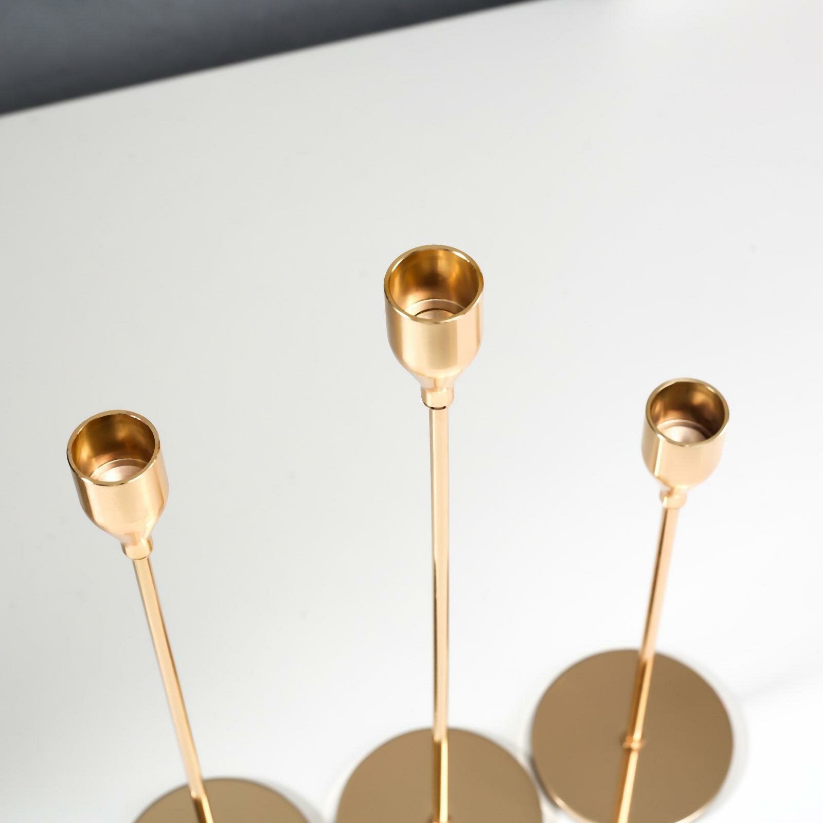 Подсвечник металл "Классика" набор 3 шт золото 24,5х7,7х7,7, 29,5х7,7х7,7, 34,5х7,7х7,7 см информация:
