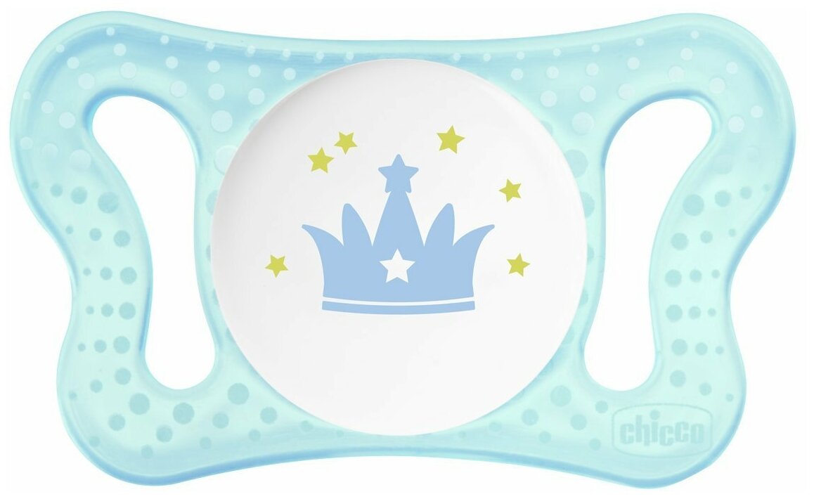 Пустышка силиконовая Chicco MICRO, 2шт., 0-2 мес., для принца, рисунок корона/соска пустышка 0/для новорожденных/держатель для соски/силиконовая соска для мальчика/2 штуки соски / футляр для сосок/чико