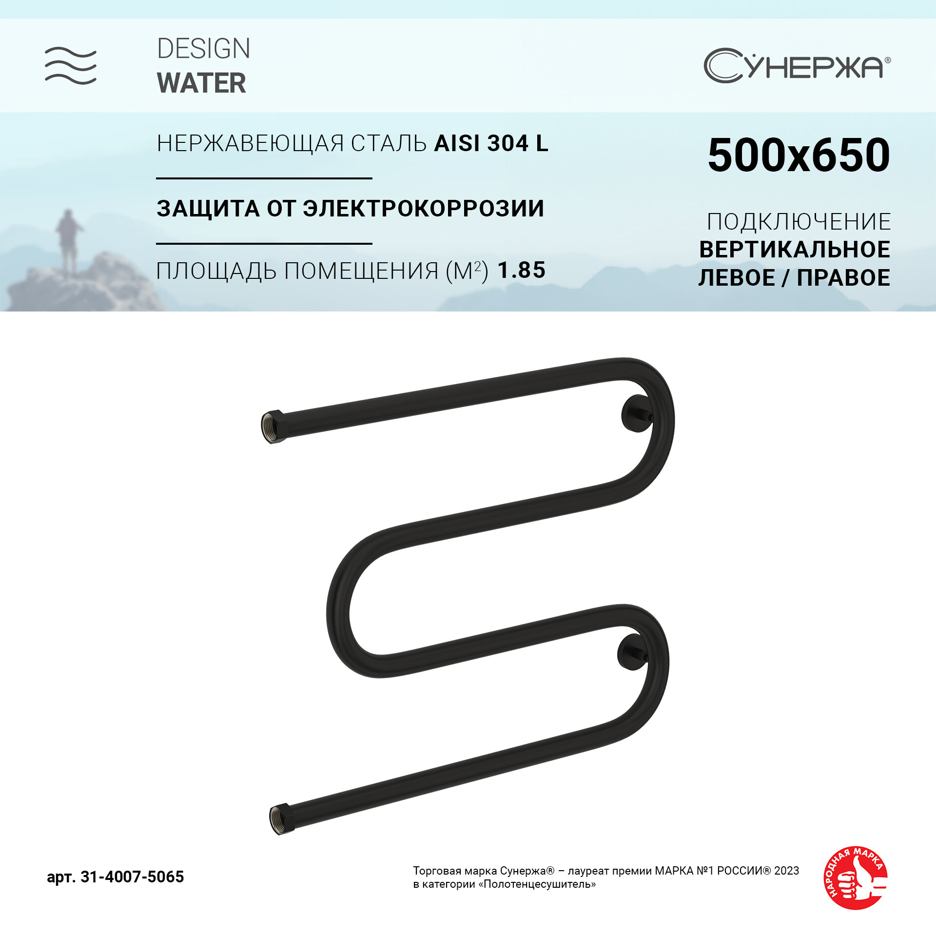 Отзывы на Полотенцесушитель водяной Сунержа 31-4007-5065 М-образный+ Полотенцесушитель водяной 500х650 мм, Н. Г. 1", матовый черный