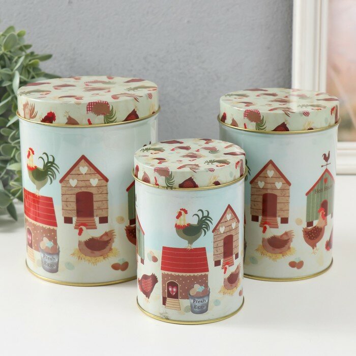 Шкатулка металл цилиндр "Курятник" набор 3 шт 7,5х7,5х10,7 9х9х12,7 10,5х10,5х13,5 см информация: