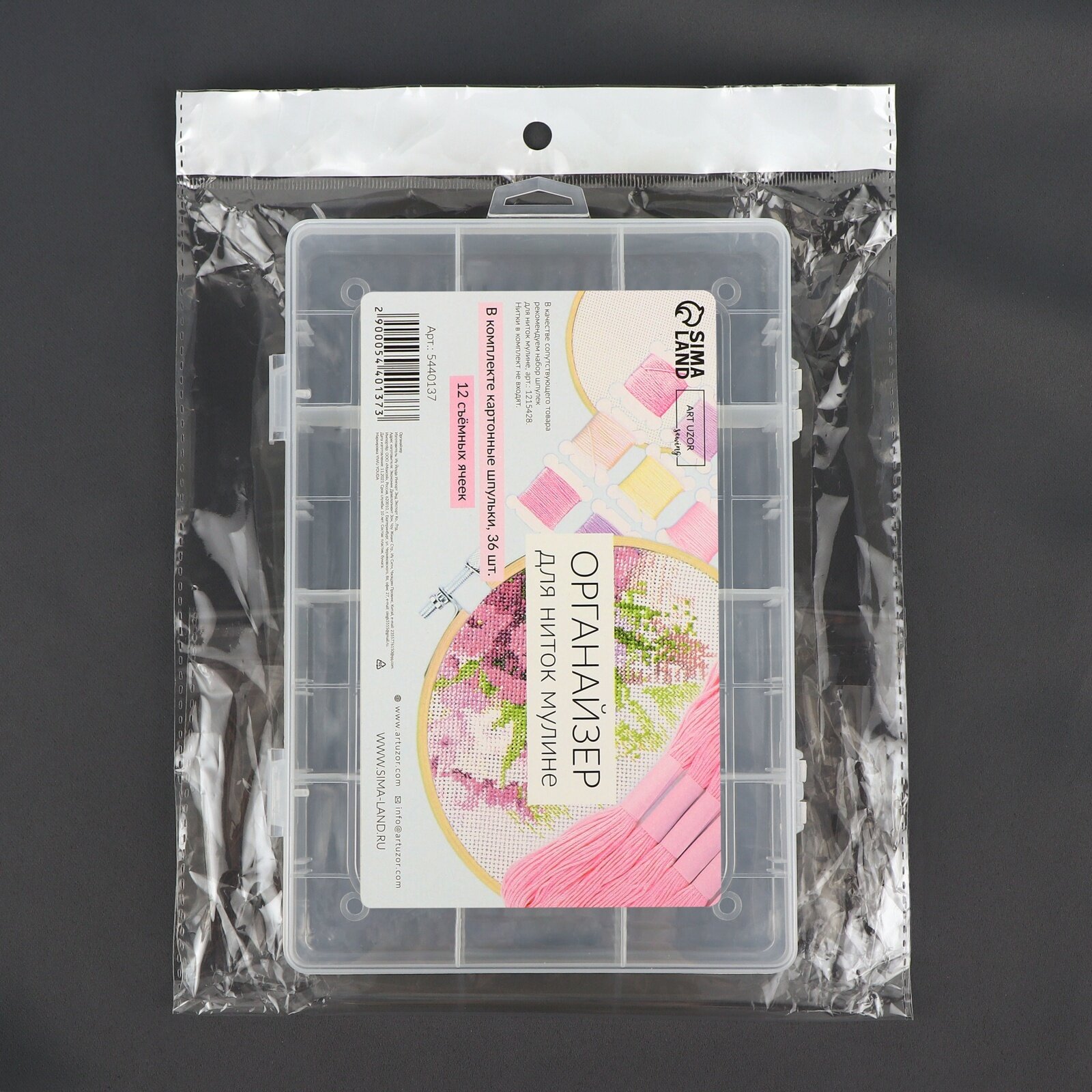 10 цен на Органайзер для ниток мулине с бобинами, 12 съёмных ячеек, 19,6 × 13,2 × 3,6 см, цвет прозрачный