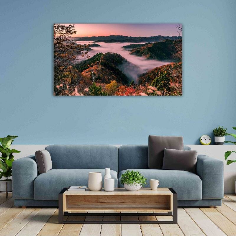 Картина на холсте 60x110 LinxOne "Япония туман префектура Сига" интерьерная для дома / на стену / на кухню / с подрамником информация: