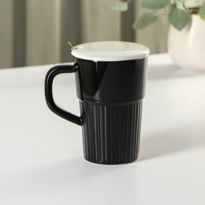 10 цен на Кружка керамическая с крышкой и ложкой Vintage, 350 мл, цвет чёрный