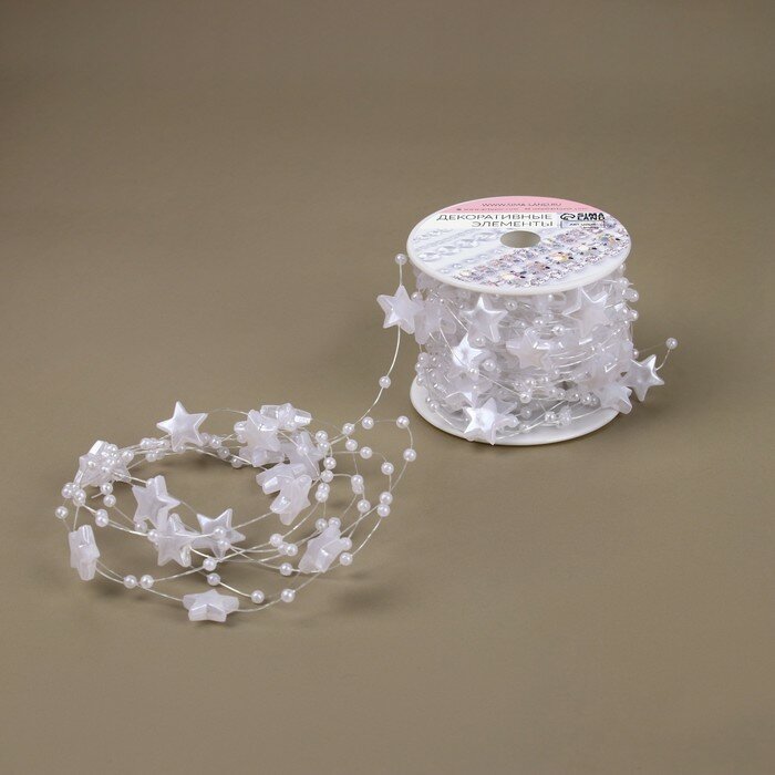 Бусы на леске, «Звёзды», 3/14 мм, 9 ± 0,5 м, цвет белый информация: