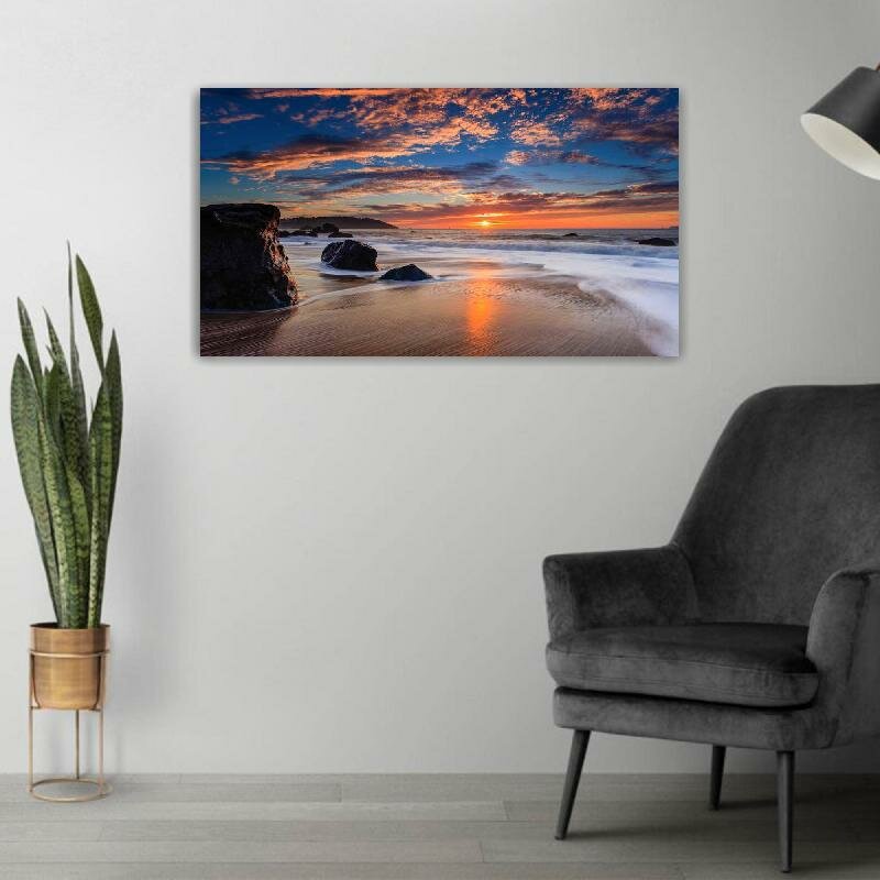 Отзывы на Картина на холсте 60x110 LinxOne "Небо скалы камни закат море" интерьерная для дома / на стену / на кухню / с подрамником