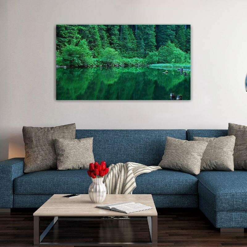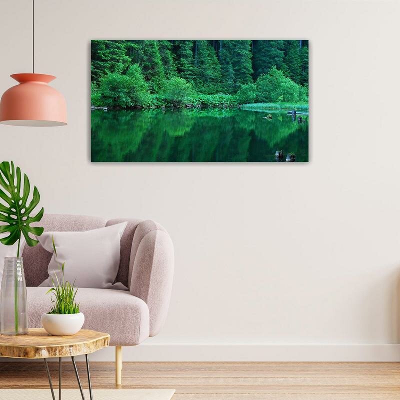 Картина на холсте 60x110 LinxOne "Лес отражение лето кусты" интерьерная для дома / на стену / на кухню / с подрамником информация: