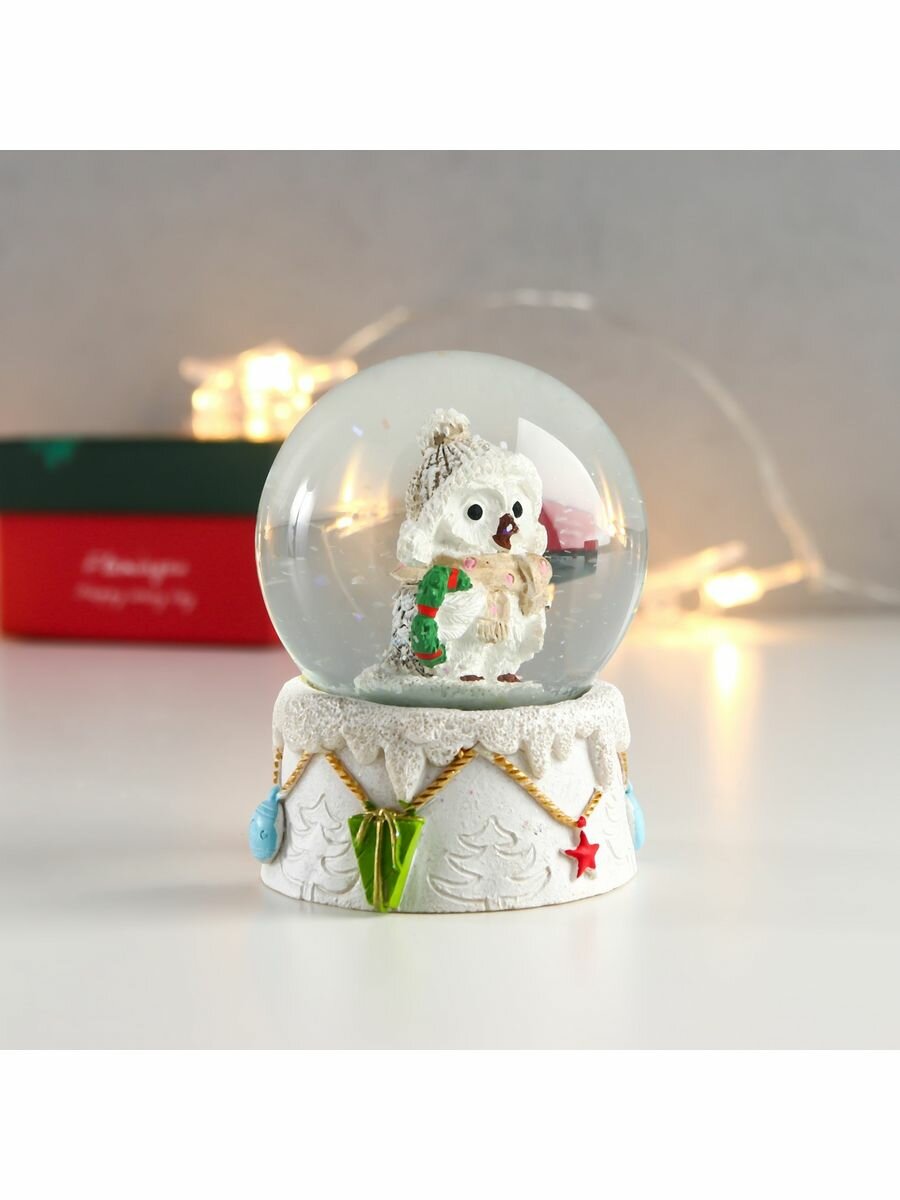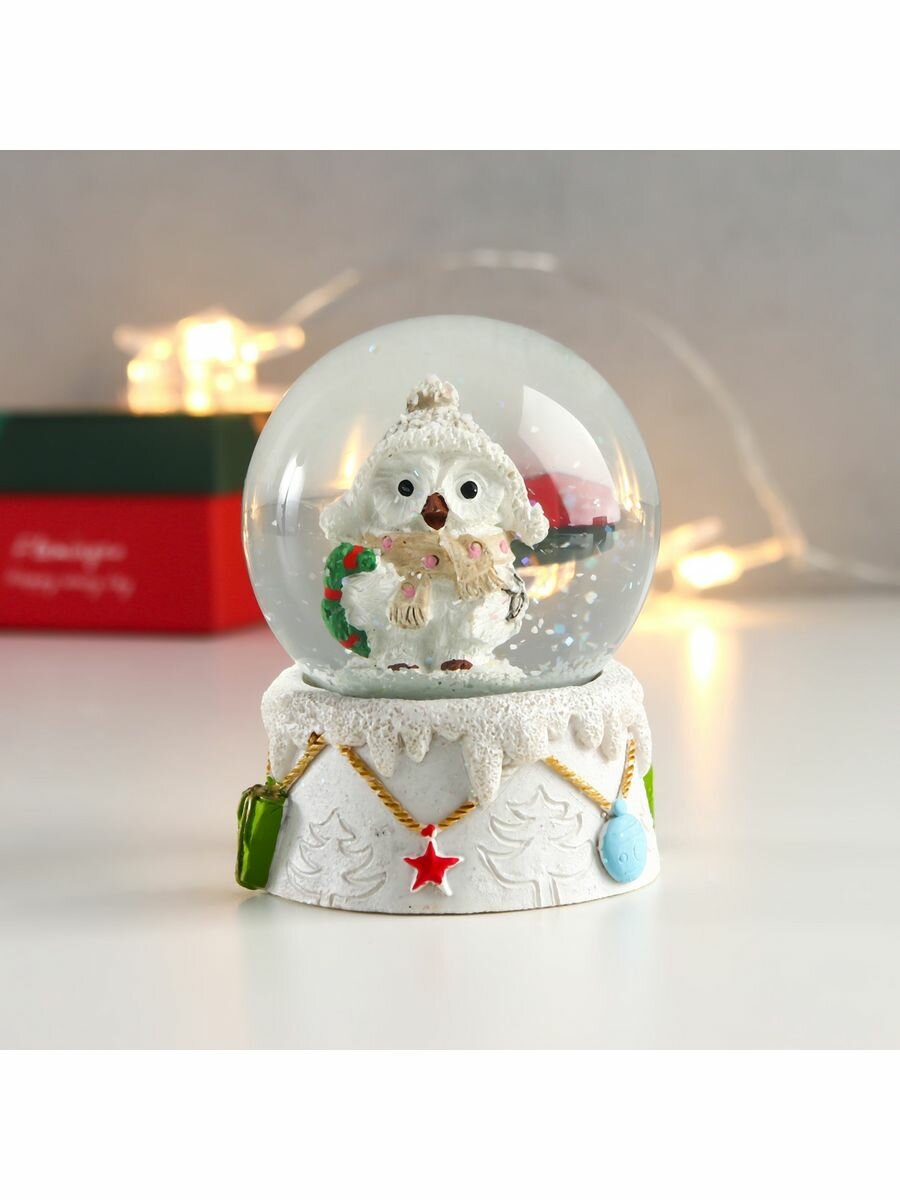Сувенир полистоун водяной шар Филин в шапке с венком d=6, информация: