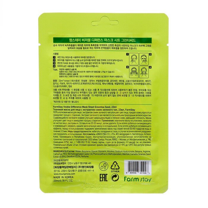 FarmStay Новогодний набор из 10 масок для лица Farmstay с экстрактом семян зеленого чая информация: