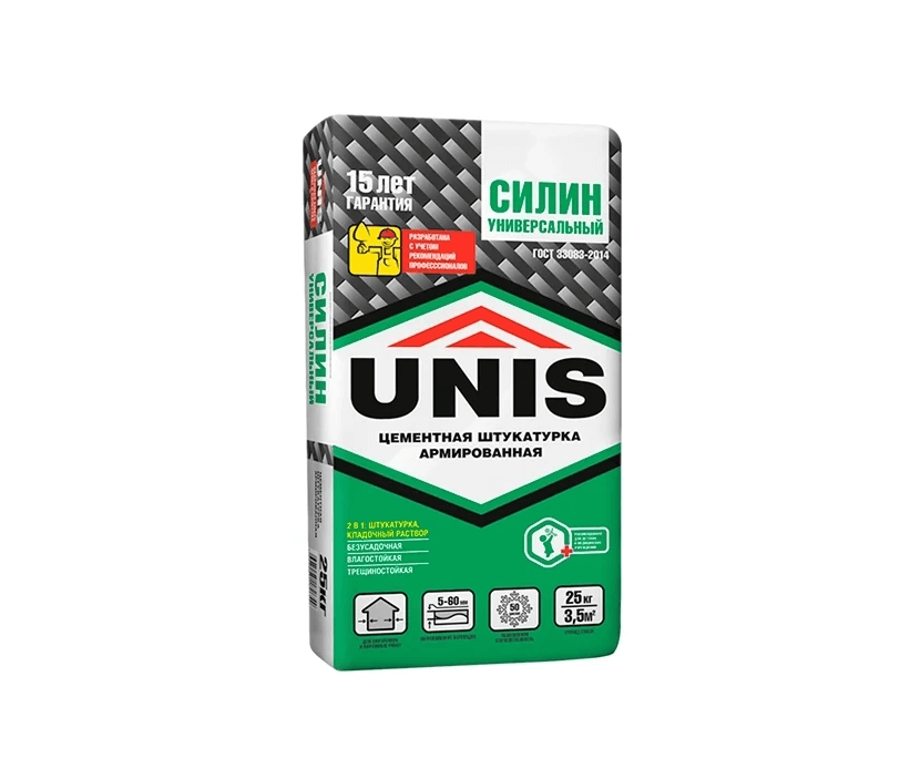 Юнис Силин Универсальный армированный штукатурка (25кг) / UNIS Силин Универсальный штукатурка цементная армированная (25кг)