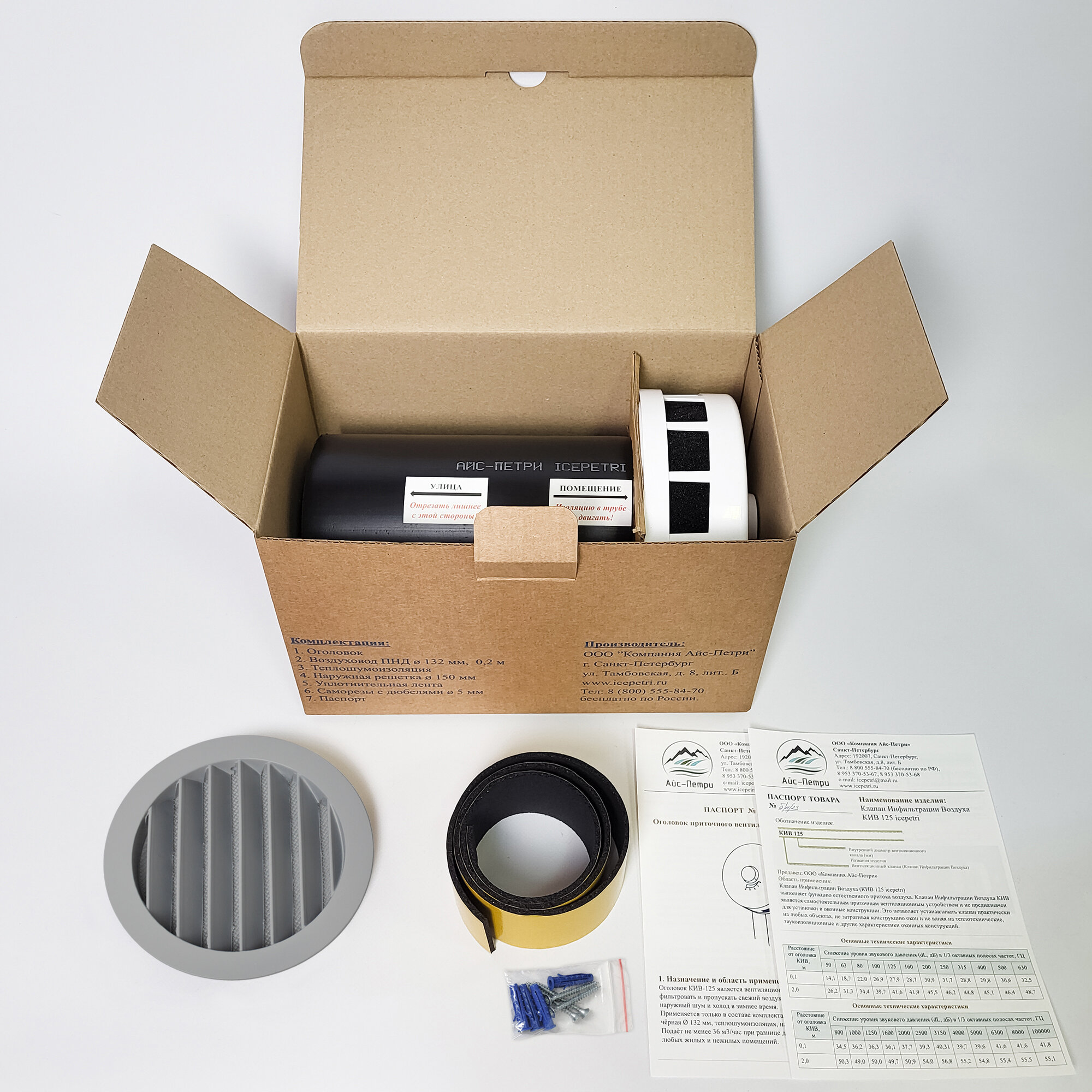 10 цен на Приточный клапан КИВ-125 icepetri 200мм с к. базальтом и AL. реш. RAL7047 (телегрей 4 матовый)