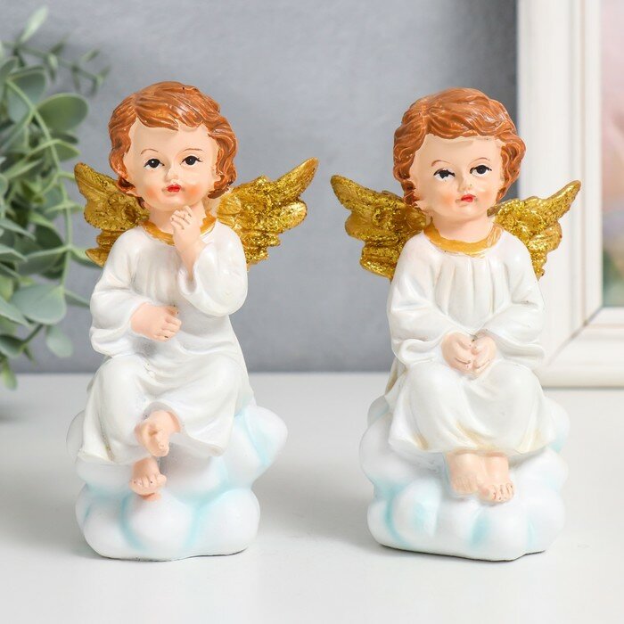 Сувенир полистоун "Ангел в тоге на облаке, золотые крылья" микс 8х7х13,5 см информация: