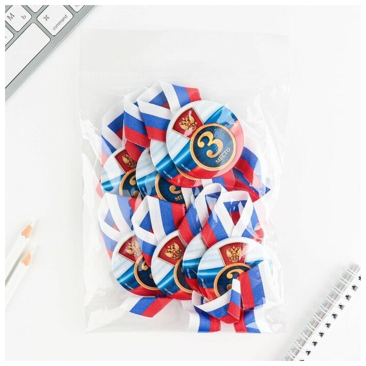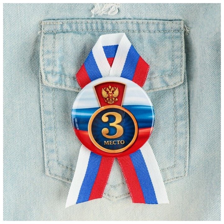 10 цен на Значок закатной с лентой "3 место", триколор, 56мм