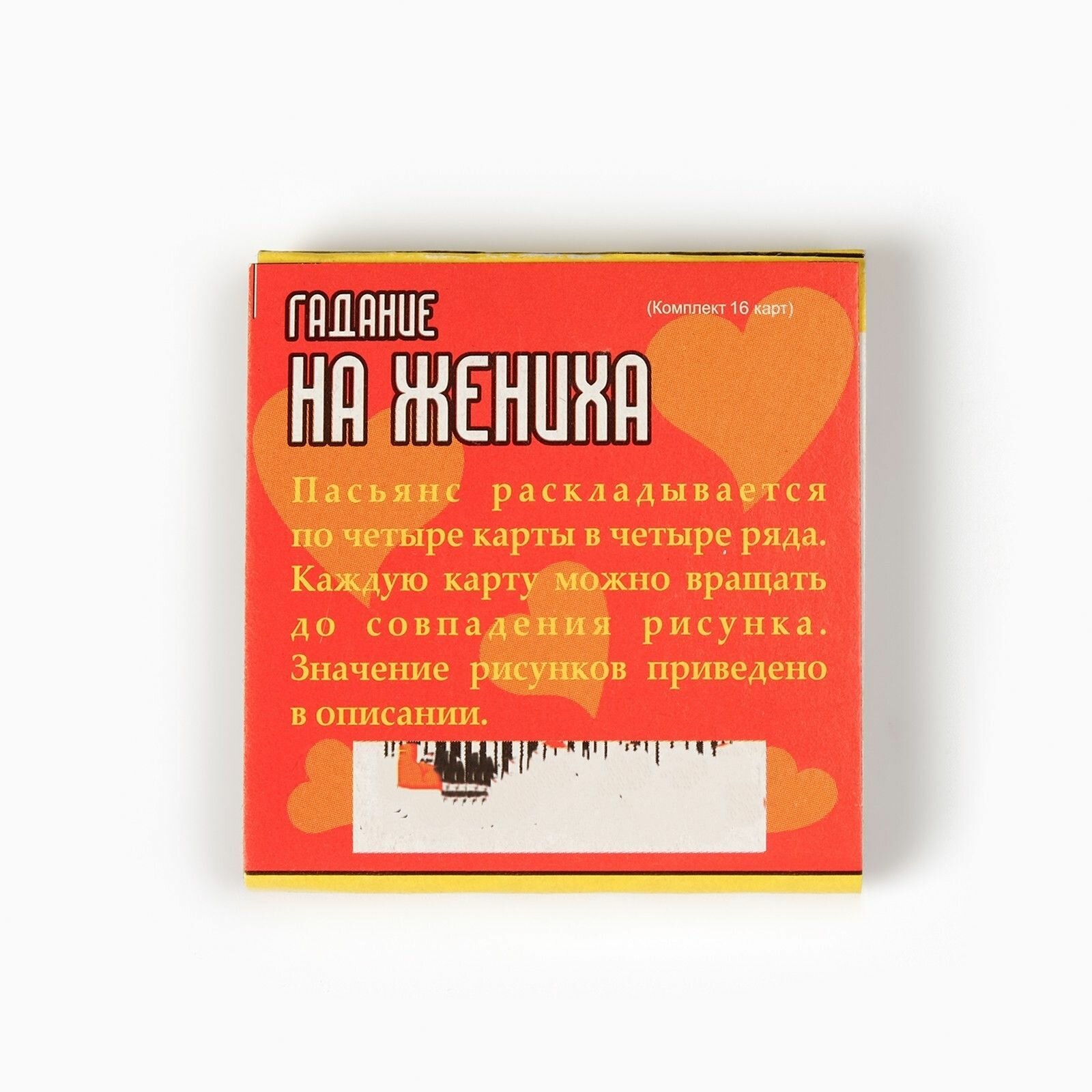 0 отзывов, средняя оценка 0. Чтобы купить «Пасьянс "Гадание на жениха"» по лучшей цене мы сканируем авито, алиэкспресс, маркет, озон, савеловский, плеер, горбушку, беру, официальные сайты и находим минимальную. Администрация не несет ответсвенность актуальность цен на Пасьянс "Гадание на жениха", более подробно узнавайте на сайте магазина.