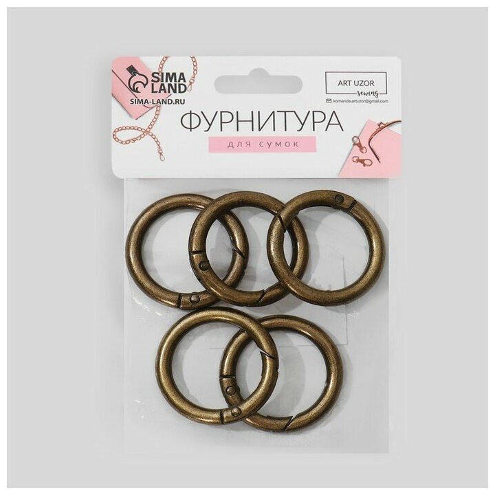 10 цен на Кольцо-карабин, d = 25/35 мм, толщина - 5 мм, 5 шт, цвет бронзовый
