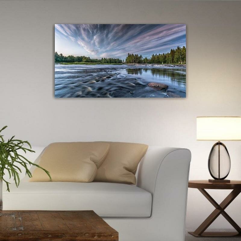 Картина на холсте 60x110 LinxOne "Лес река облака Финляндия" интерьерная для дома / на стену / на кухню / с подрамником информация: