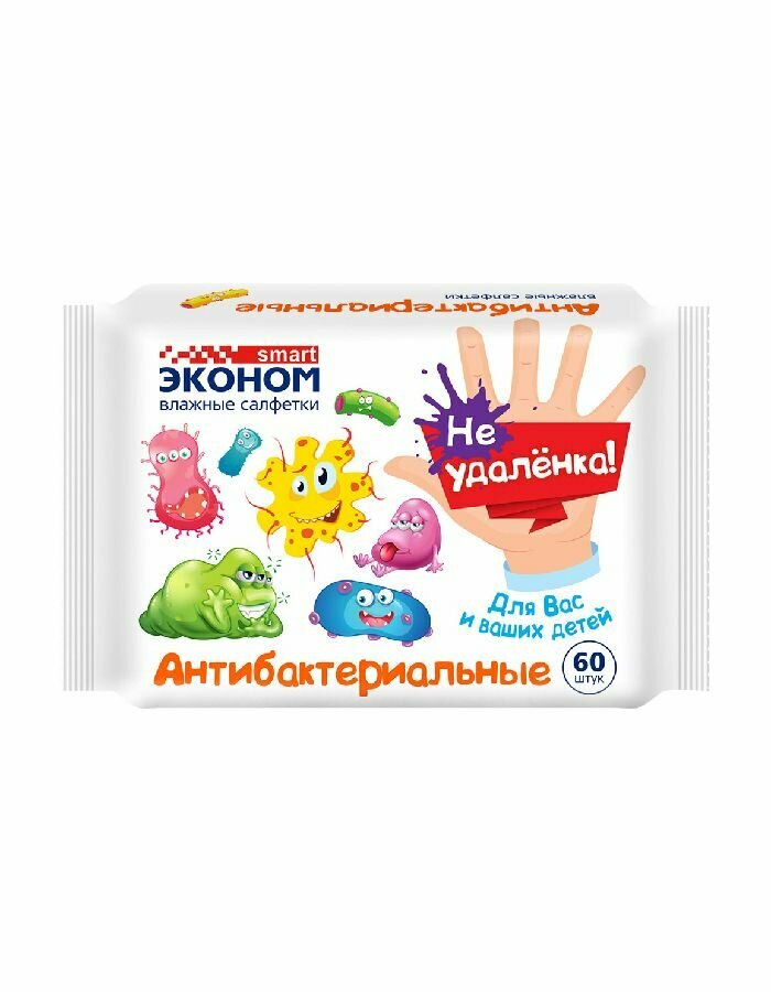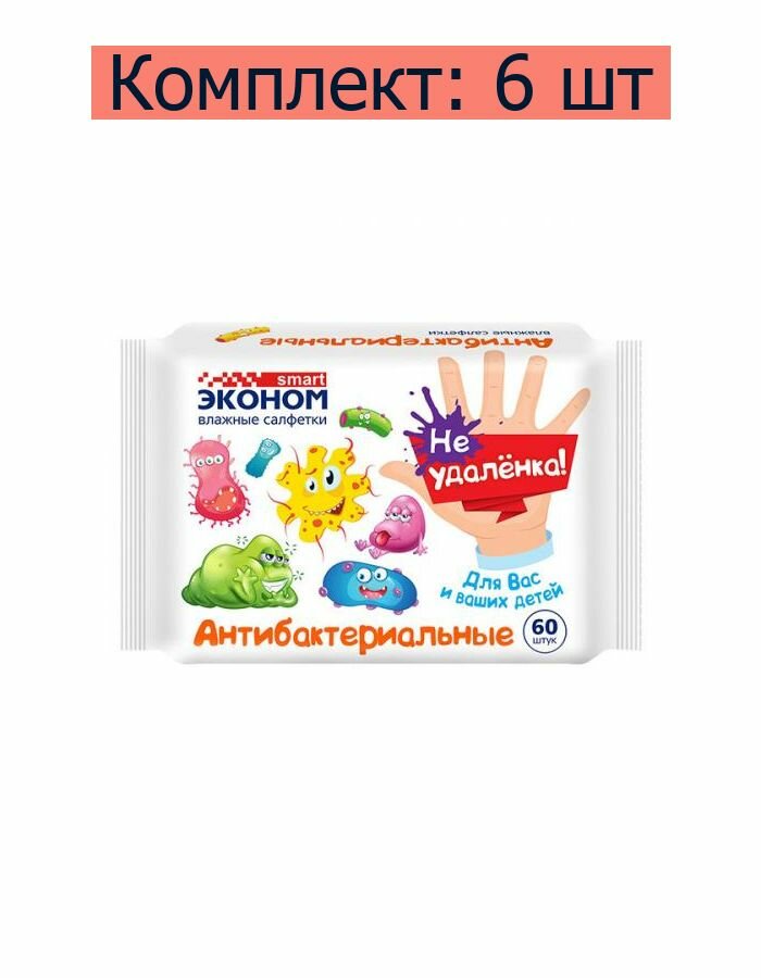 10 цен на SMART, Влажные салфетки Эконом детские антибактериальные, 60 шт, 6 уп