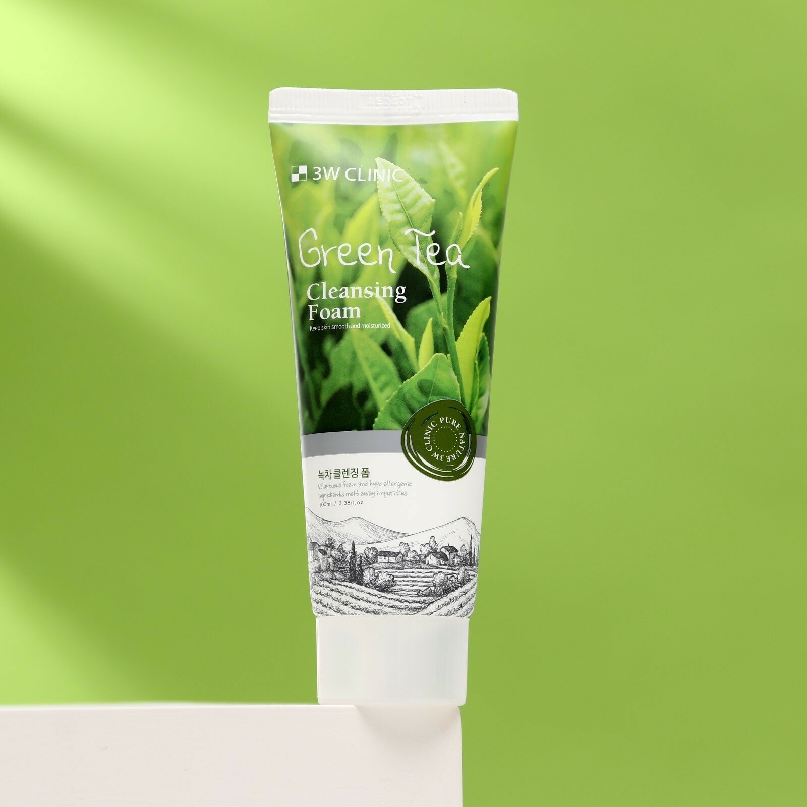 Очищающая пенка для умывания 3W CLINIC, зелёный чай, 100 мл информация: