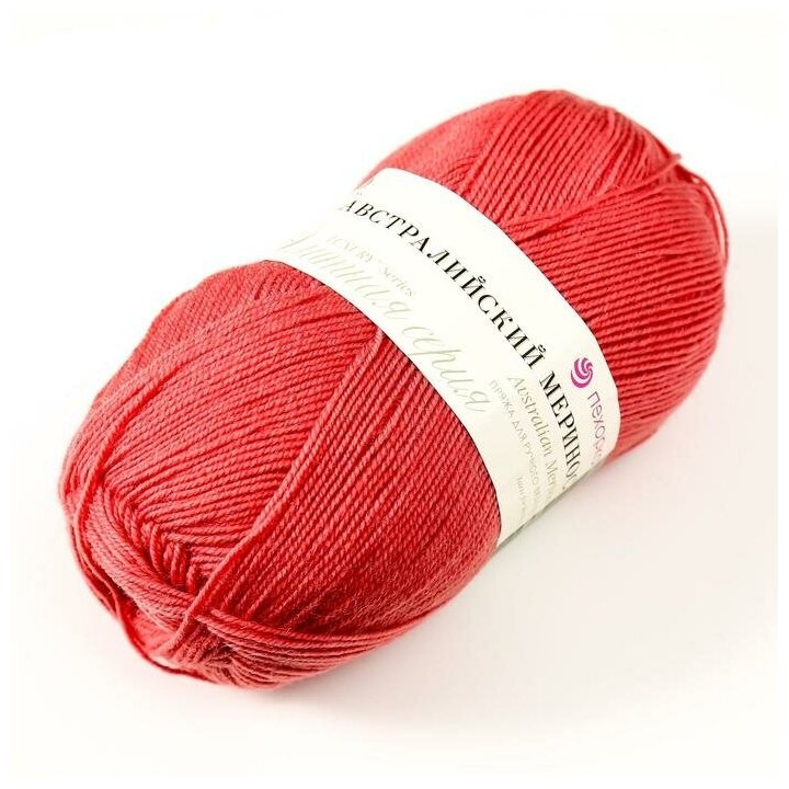 Пряжа "Австралийский меринос" 95%мер. шерсть,5% акрил объёмный 400м/100гр (185-Земляника), 1шт информация: