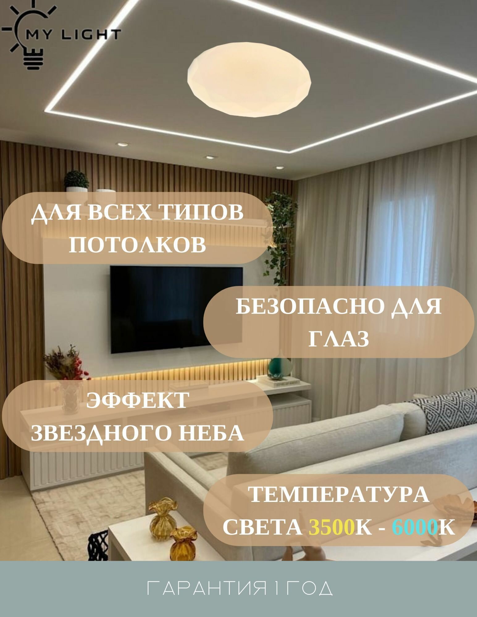 Отзывы на Люстра потолочная светодиодная круглая MyLight белая с пультом управления для всех видов потолков 031-400 LED 48W, потолочный светильник