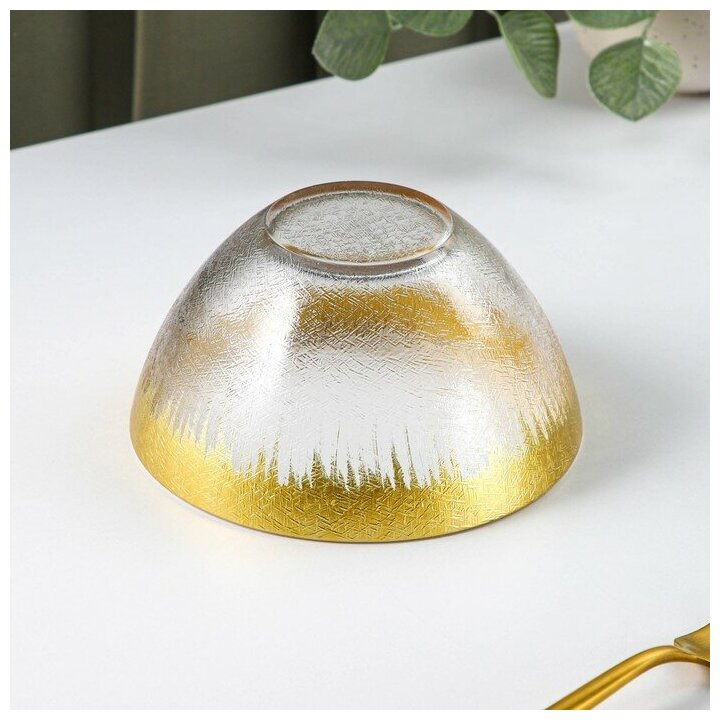 10 цен на Тарелка стеклянная глубокая "Бурлеск", 600 мл, d=15 см, цвет золотой