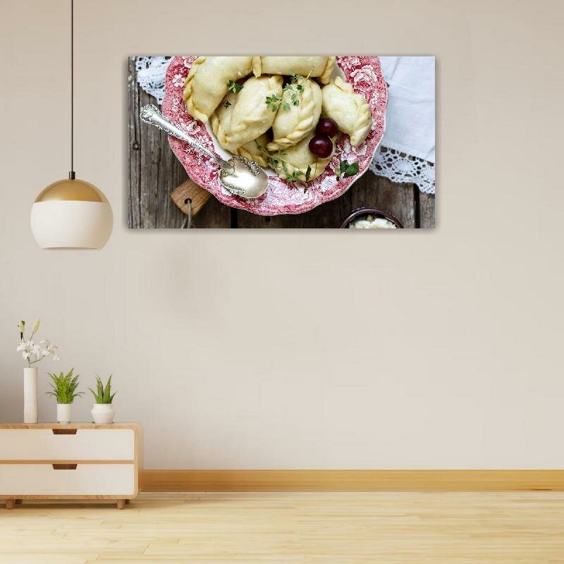 Картина на холсте 60x110 LinxOne "Вишни вареники творог ложка" интерьерная для дома / на стену / на кухню / с подрамником информация: