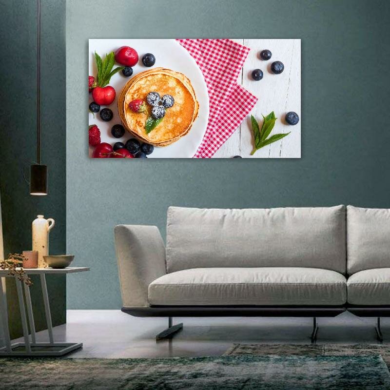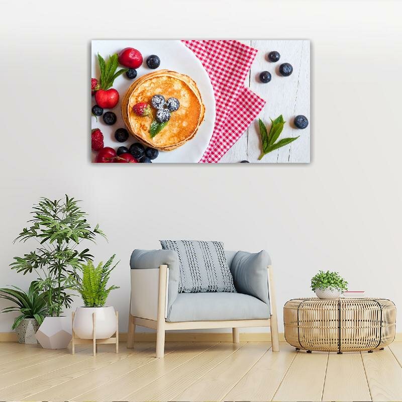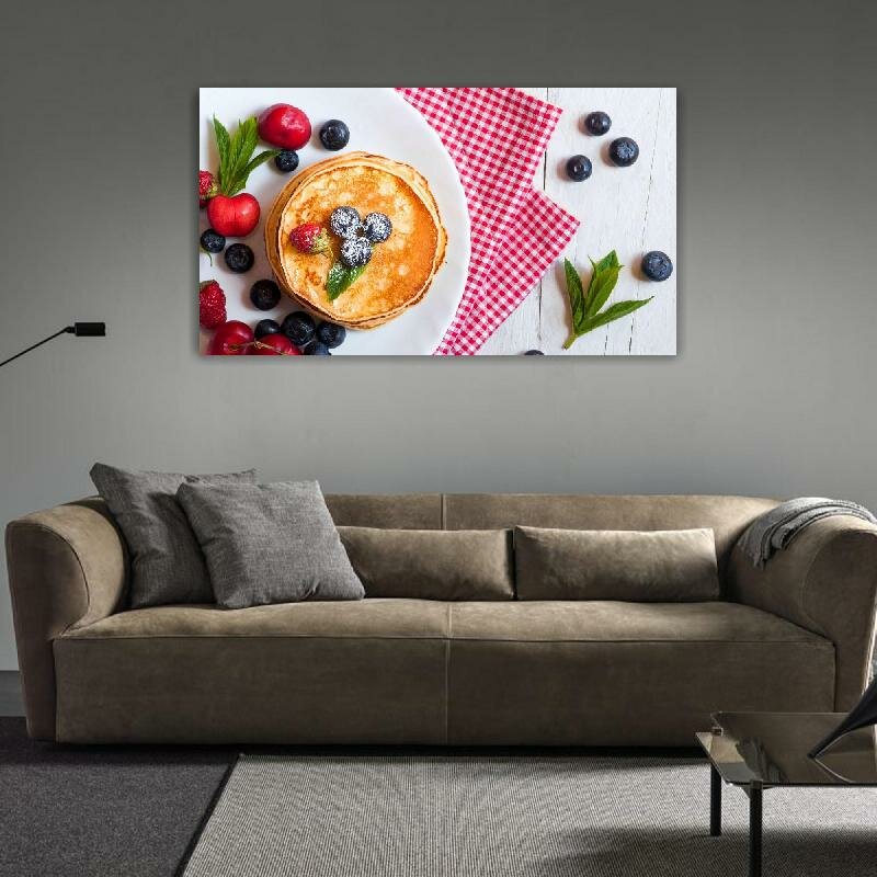 Картина на холсте 60x110 LinxOne "Блины Черника Ягоды Пища" интерьерная для дома / на стену / на кухню / с подрамником информация: