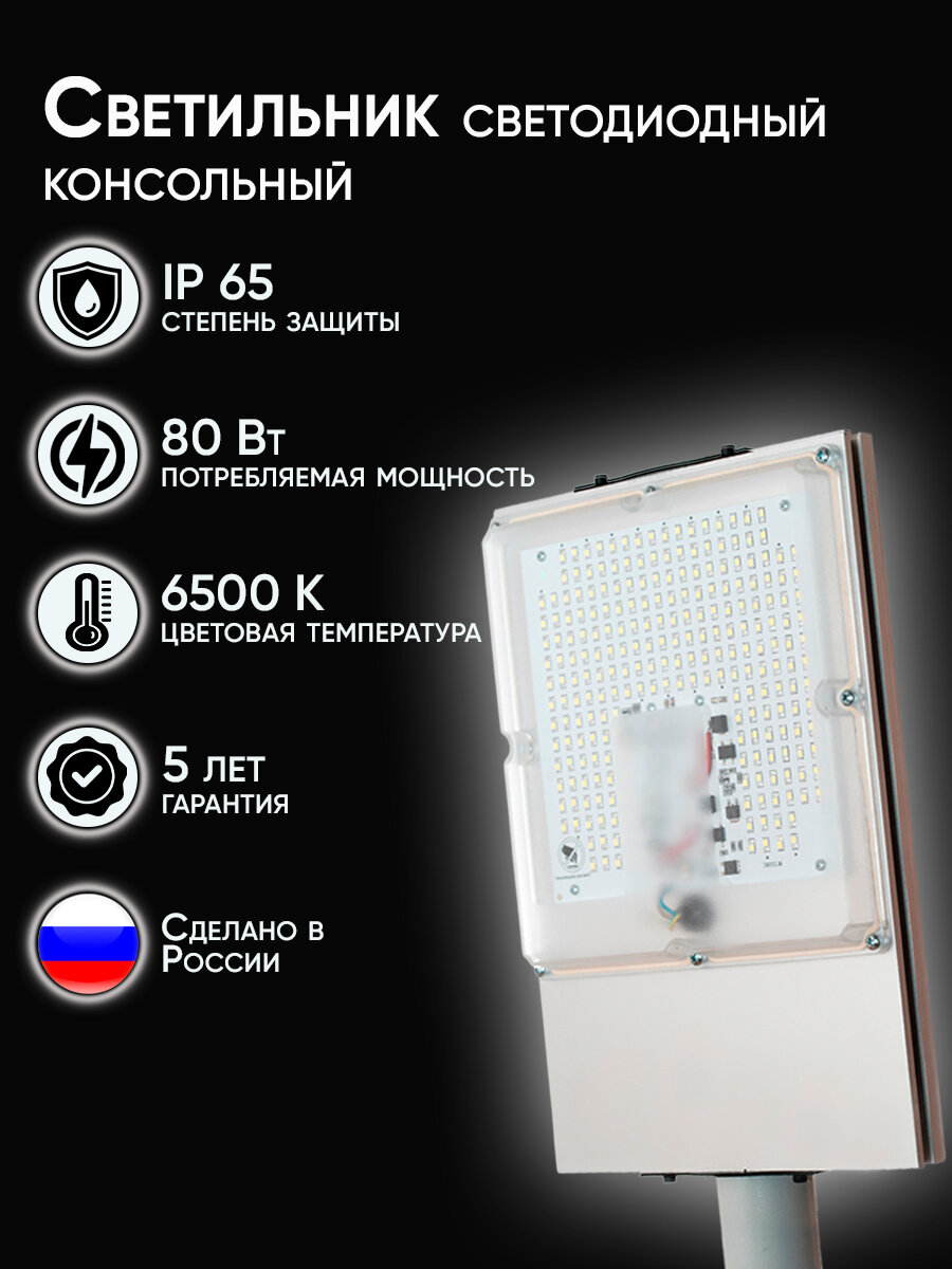 Консольный уличный светильник Urban Light GLP-011-080-IP65, 6500K информация:
