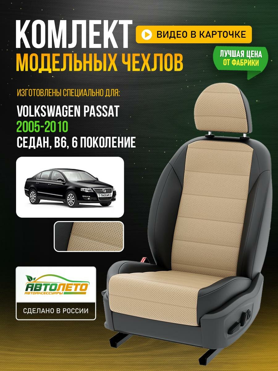 10 цен на Чехлы для Volkswagen Passat 6 B6 1988-2020 седан Бежевый Черный Экокожа с перфорацией Авто Лето LA187C59