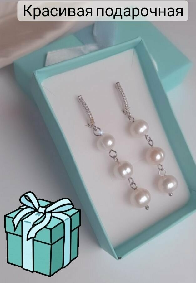 10 цен на серьги с натуральным белым жемчугом/ бижутерия женская/ серьги из трех жемчужин/ сережки женские висячие