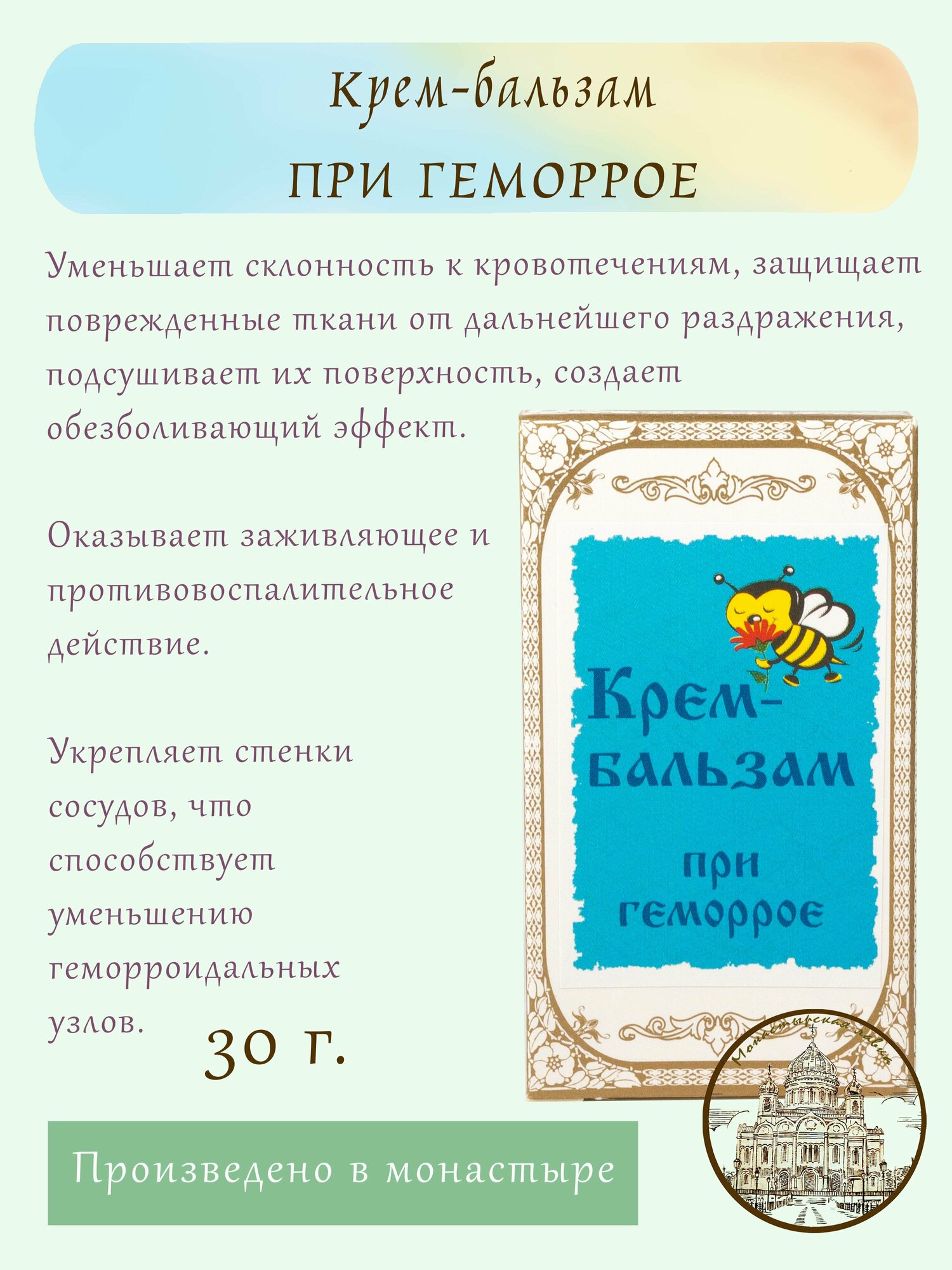 Крем-бальзам при геморрое, 30 гр / Монастырский Продукт информация: