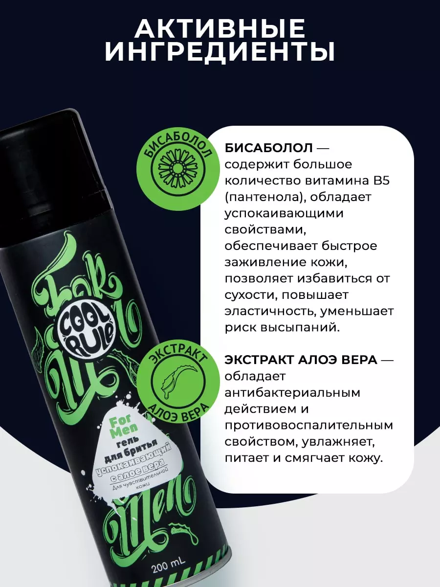 Cool Rule Гель Face для Бритья для Чувствительной Кожи Успокаивающий c Алое Вера Мужской, 200 мл информация: