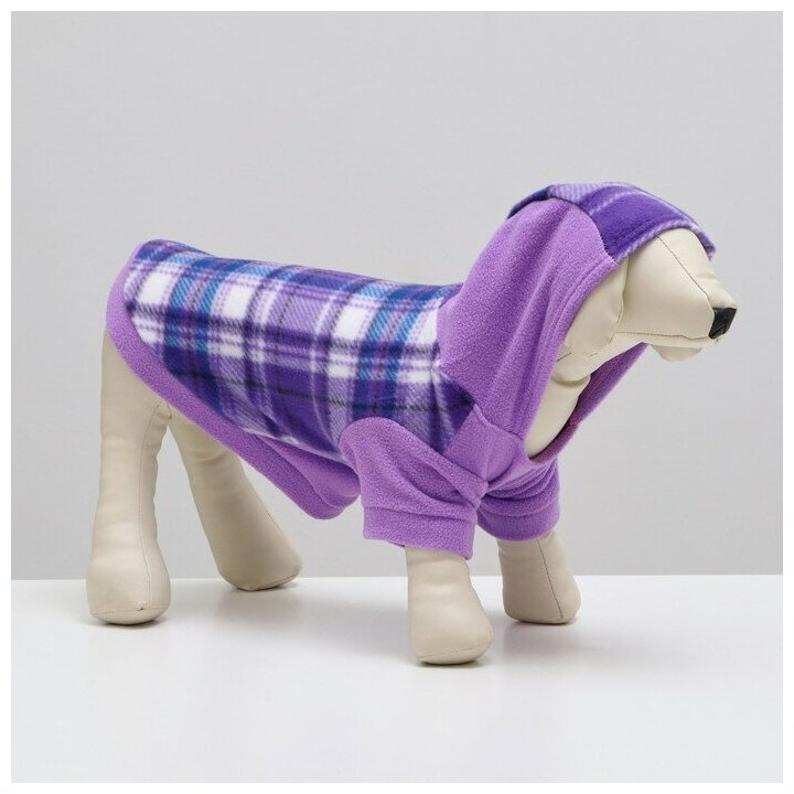 10 цен на Толстовка с капюшоном для собак, размер S, сиреневая клетка (ДС 23, ОШ 26, ОШ 32 см)
