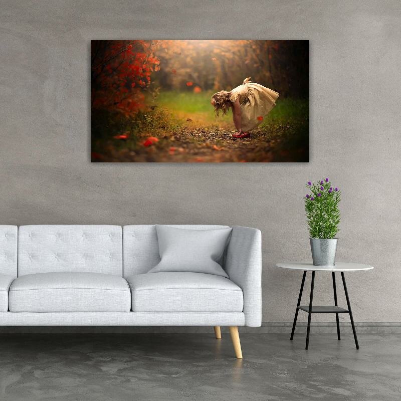 Картина на холсте 60x110 LinxOne "Девочка осень листья платье" интерьерная для дома / на стену / на кухню / с подрамником информация: