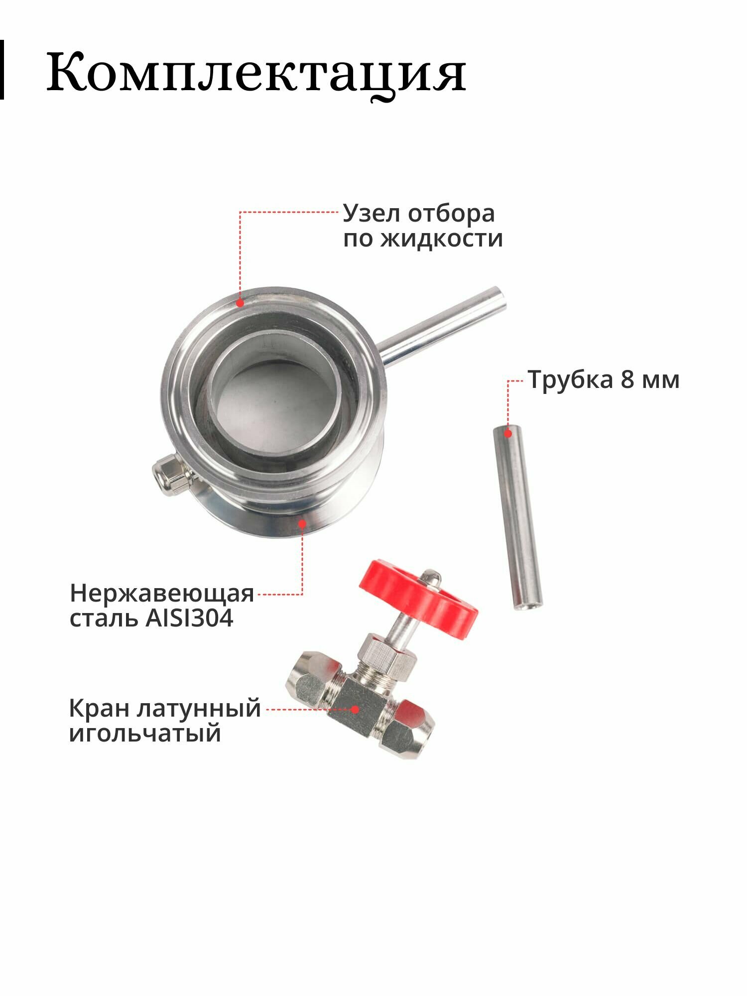 Узел отбора Mendeleeff, по жидкости, для колонны 2 дюйма, с прямой трубкой и латунным игольчатым краном информация: