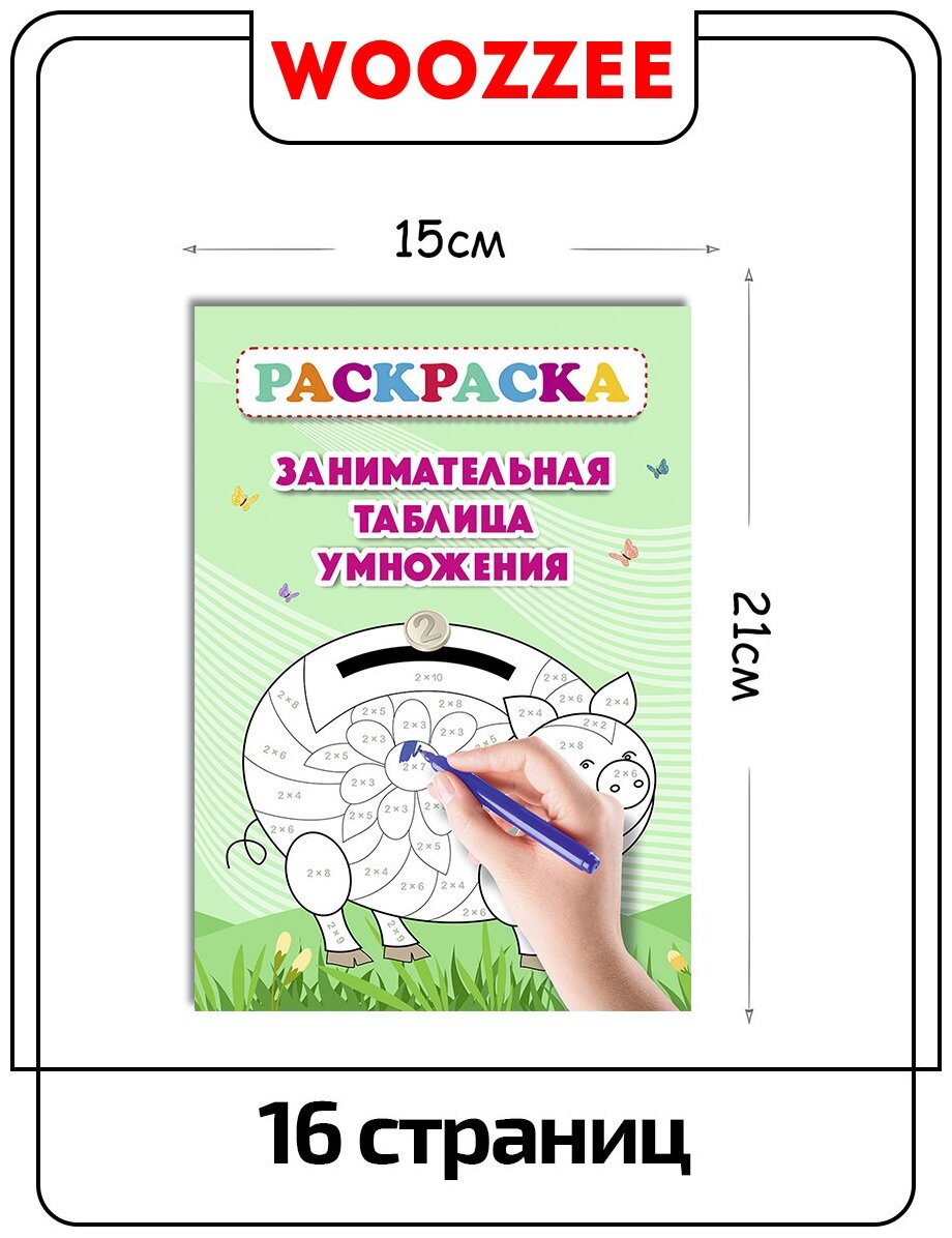 Раскраска (книжка) Woozzee "Занимательная таблица умножения" / большая раскраска на день рождения / детское творчество / развитие мелкой моторики информация: