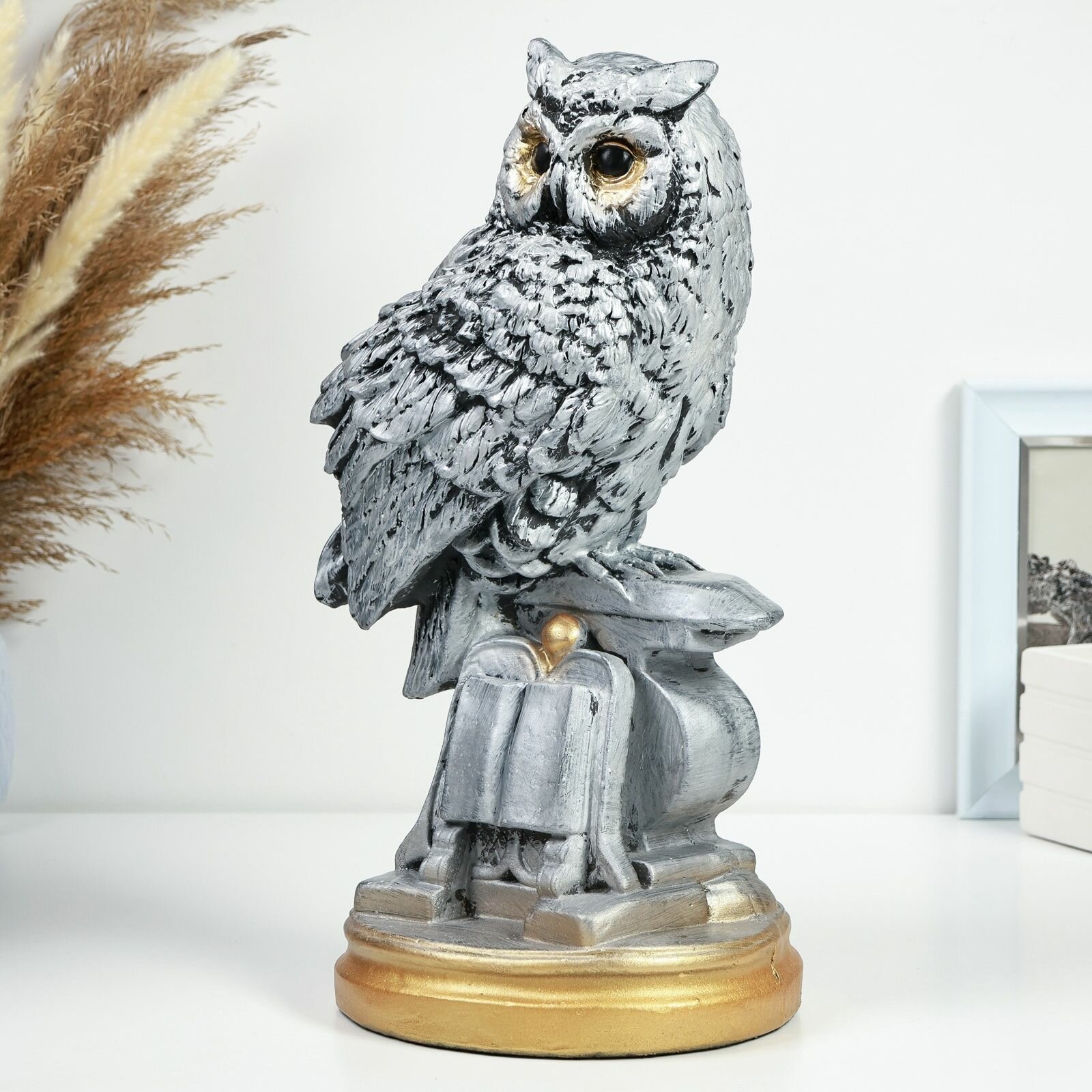 Копилка "Сова с книгой" серебро, 21х17х35см информация: