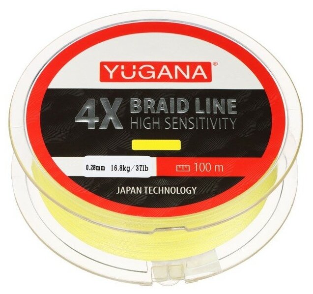 Леска плетеная YUGANA X4 PE Yellow, 0.28 mm, 100 m информация: