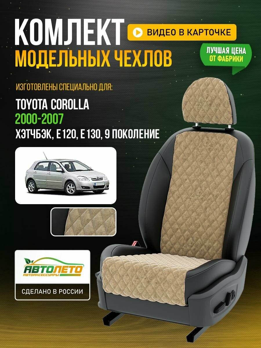 10 цен на Чехлы для Toyota Corolla 9 E120, E130 1991-2020 хэтчбэк Бежевый Черный Алькантара с ромбом Авто Лето LA244C7